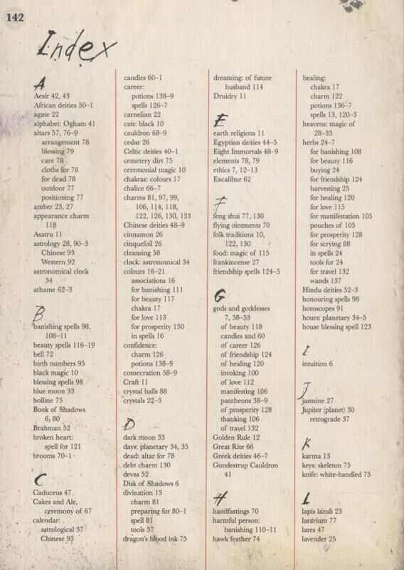 The author introduces magical ethics and how to use magic in everyday life at the beginning of the book. The detailed illustrated multi-index at the back lets the reader locate specific spells.